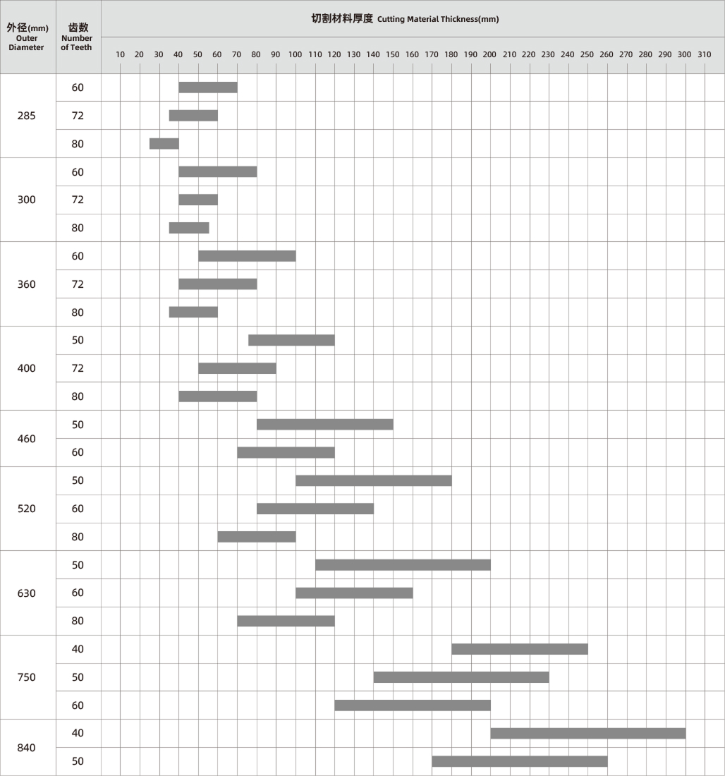 切削外徑與齒數(shù)對應(yīng)表